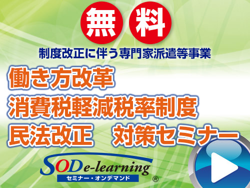 「雇用調整助成金の活用対応」、「働き方改革関連法対応」、「軽減税率の基礎知識」、「インボイス制度導入への実務対応」、「改正民法対策」に関する無料オンラインセミナーを公開しております。