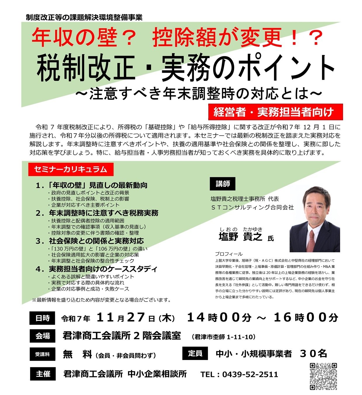 【受講者募集】年末調整に向けた「年収の壁」実務対策セミナーを開催します2025年10月20日
