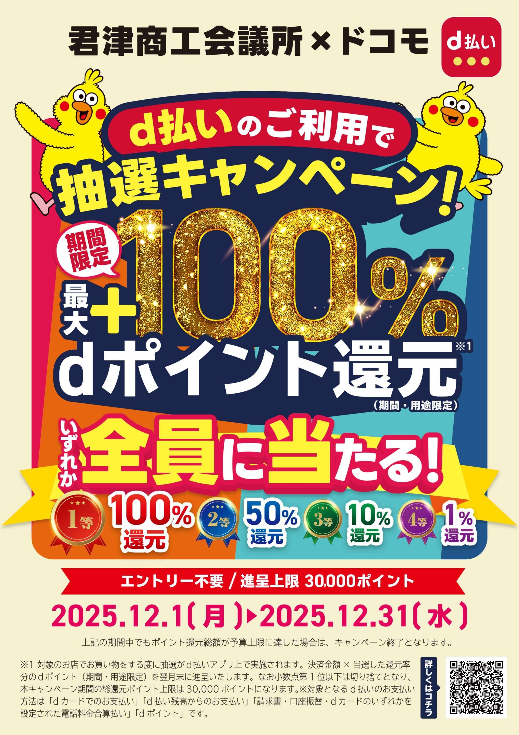 「君津エリア限定!!d払いでお得にお買物を楽しもうキャンペーン」2025年12月15日